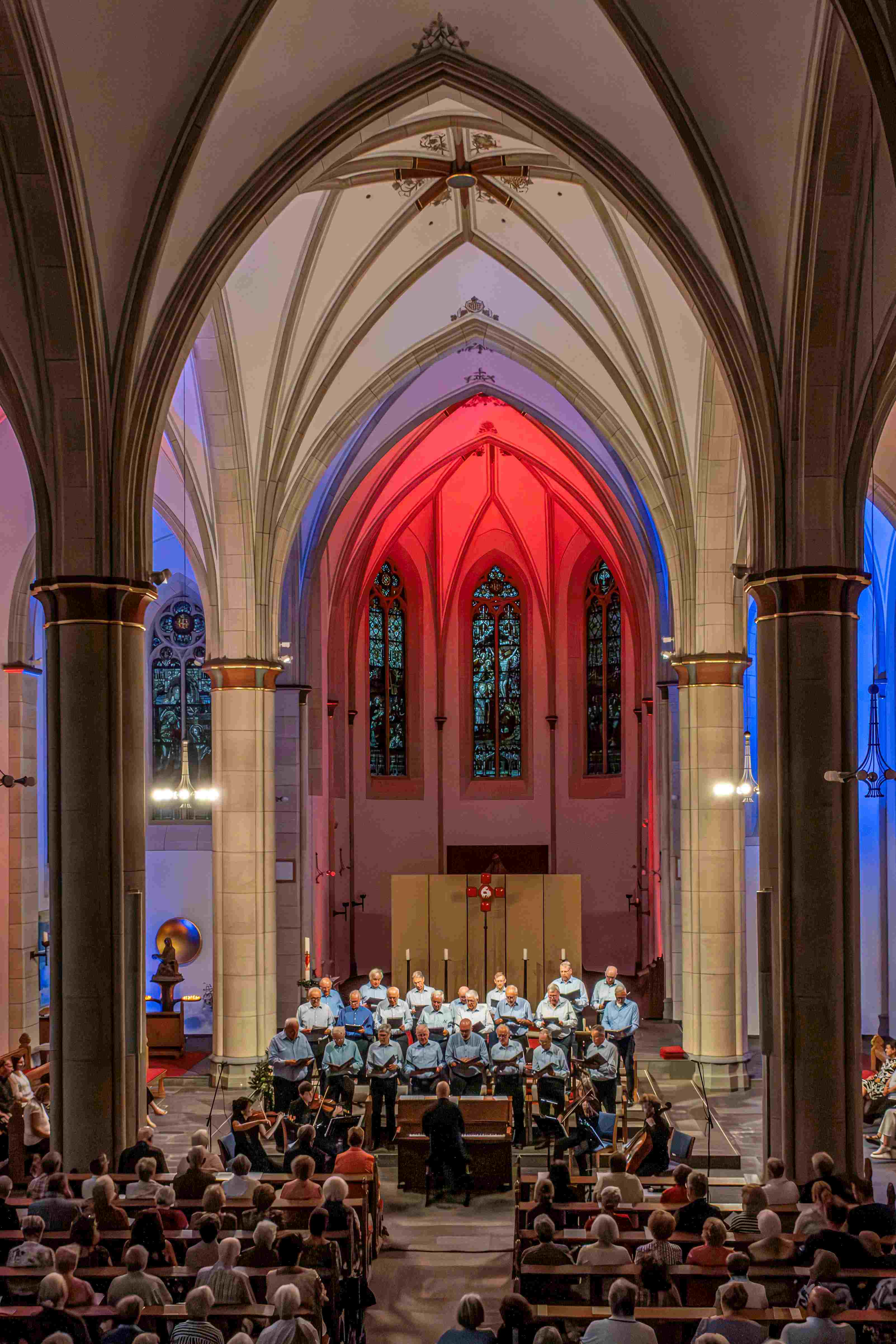 Der Männerchor Cäcilia Holzwickede und Chorleiter Dr. Andreas Feilen hatten am 20. Juli 2025 zu einem Sommerabend voll Musik eingeladen. Rund 200 Besucherinnen und Besucher folgten der Einladung in die stimmungsvoll erleuchtete Liebfrauenkirche. Als musikalische Gäste begrüßte der Chor ein hochkarätig besetztes Streichquartett.